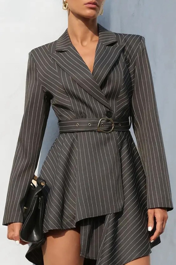 - Συνδυάστε το κομψό με το άνετο! Το μοντέλο έχει κομψή, εφαρμοστή γραμμή, ζώνη και ασύμμετρο σχεδιασμό.