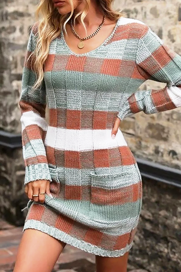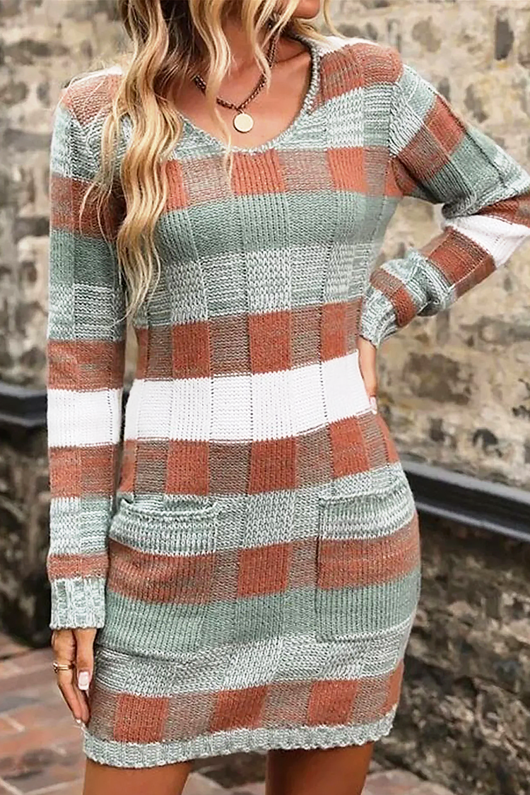 - Το φόρεμα έχει εφαρμοστή γραμμή, μακριά μανίκια, κλασικό σχέδιο και τσέπες μπροστά.