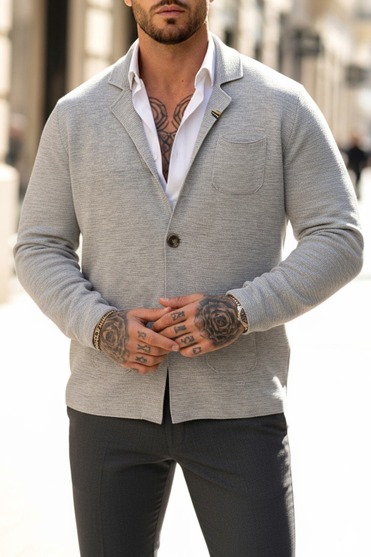 - Πρακτική ανδρική ζακέτα σε γκρι χρώμα, κατάλληλη για διάφορους συνδυασμούς μόδας.