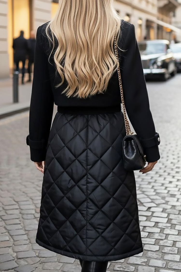 - Το μοντέλο έχει εντυπωσιακή γραμμή, κομψή γραμμή, γιακά, μανσέτες και καπιτονέ σχέδιο στο κάτω μέρος.