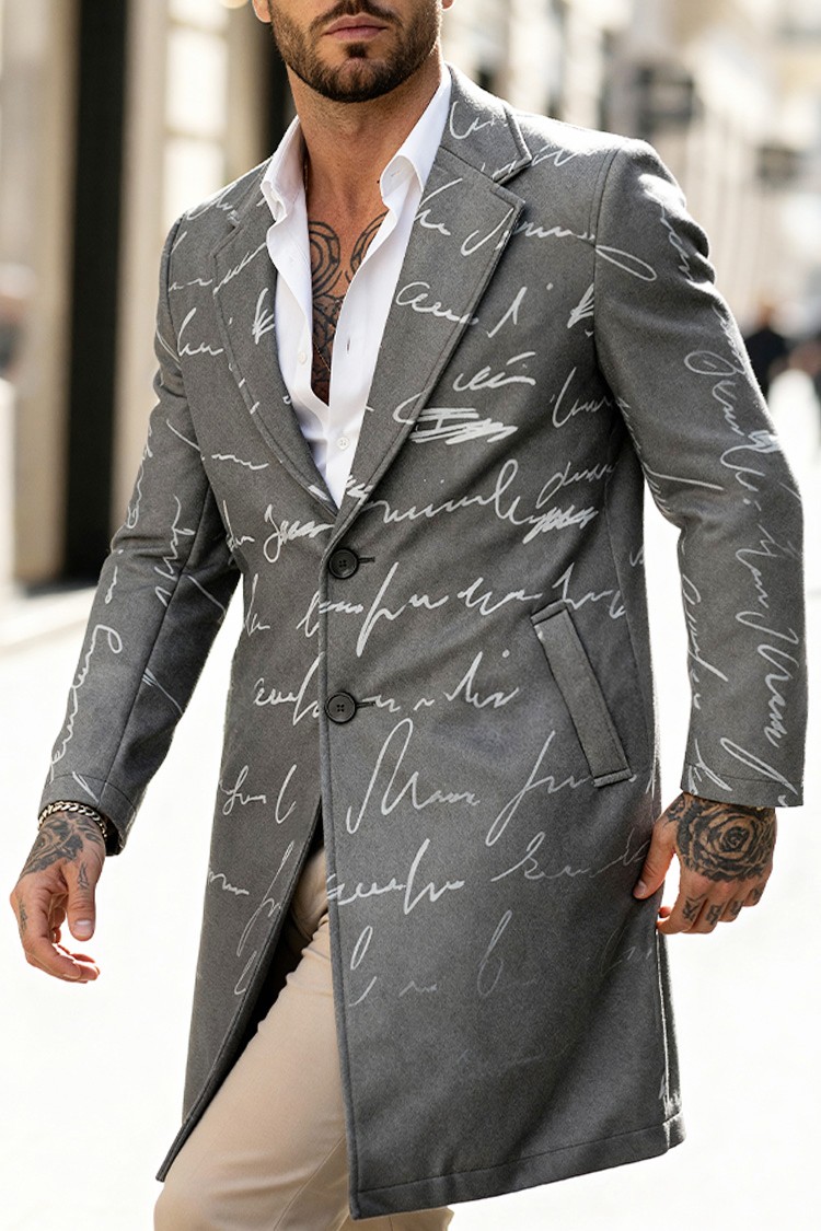 - Κομψό ανδρικό παλτό με σιλουέτα που διαμορφώνει και εντυπωσιακό, χειρόγραφο σχέδιο.
