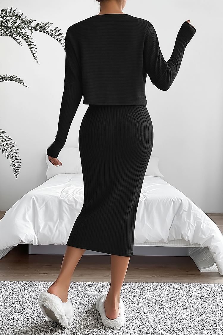 - Μοντέρνο σετ από δύο κομμάτια σε μαύρο χρώμα, κατάλληλο για διάφορες περιστάσεις.
