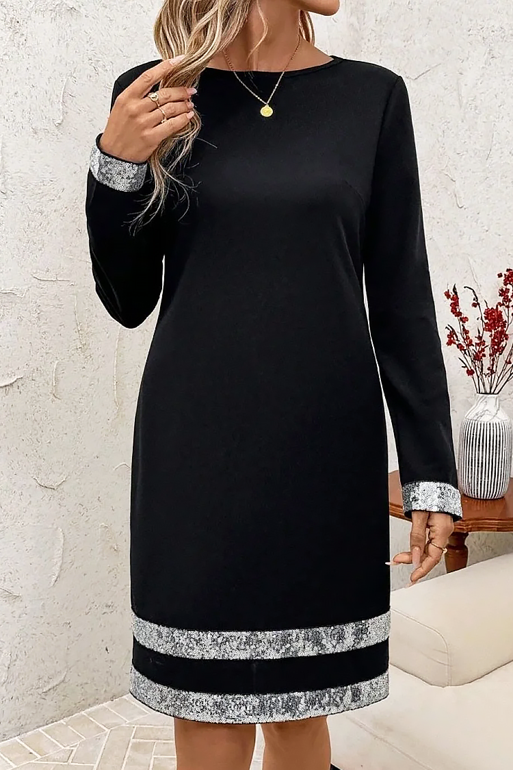 - Το μοντέλο έχει άνετη γραμμή, στρογγυλή λαιμόκοψη και λαμπερά στοιχεία.