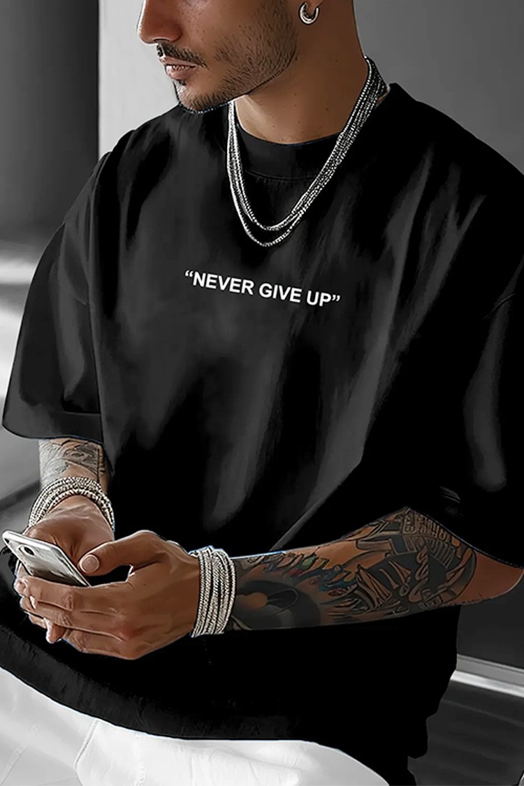 - Πρακτικό ανδρικό μπλουζάκι με άνετη γραμμή και τύπωμα never give up, κατάλληλο για καθημερινή χρήση, βόλτα ή ως συμπλήρωμα της αθλητικής σας εμφάνισης.