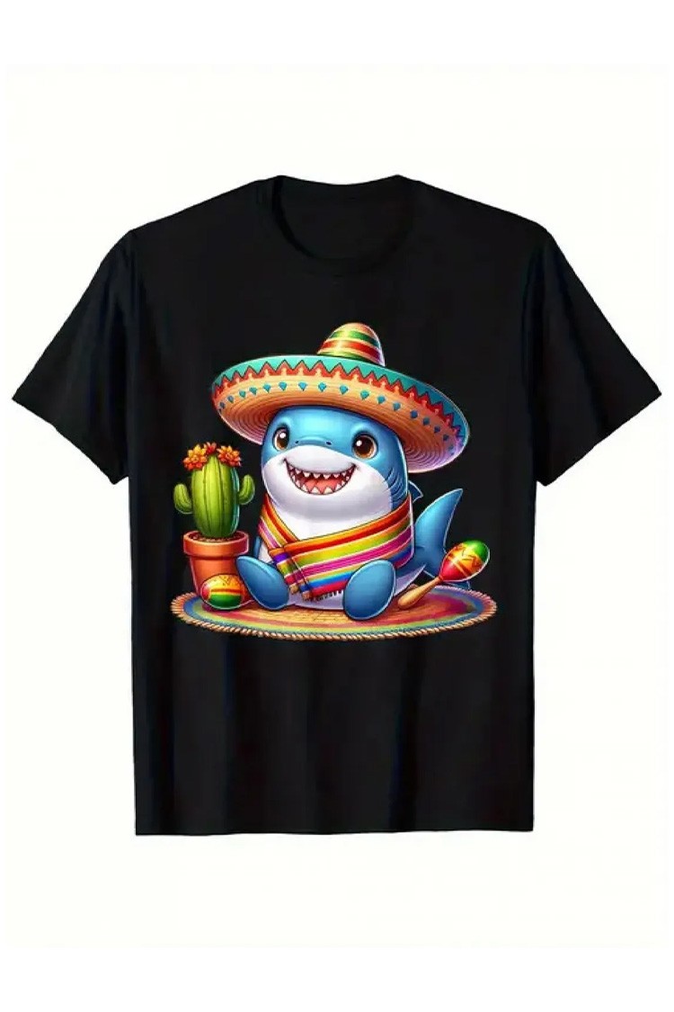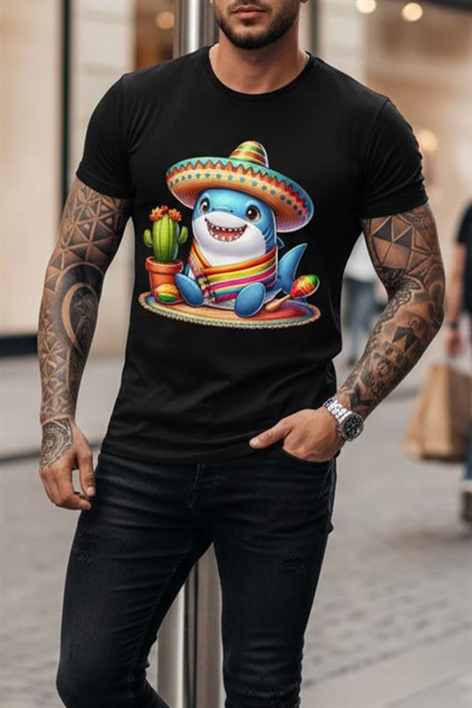 - Πρακτικό ανδρικό μπλουζάκι με άνετη γραμμή και τύπωμα με καρχαρία, κατάλληλο για καθημερινή χρήση, βόλτα ή ως συμπλήρωμα της αθλητικής σας εμφάνισης.