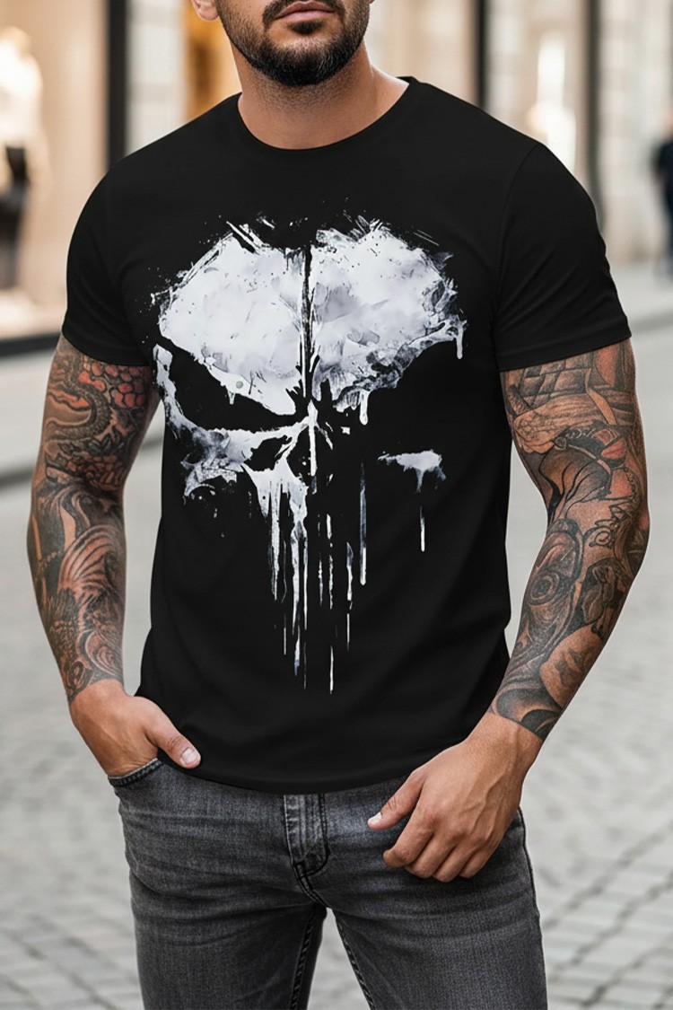 - Πρακτικό ανδρικό μπλουζάκι με άνετη γραμμή και σχέδιο με νεκροκεφαλή, κατάλληλο για καθημερινή χρήση, βόλτα ή ως συμπλήρωμα της αθλητικής σας εμφάνισης.