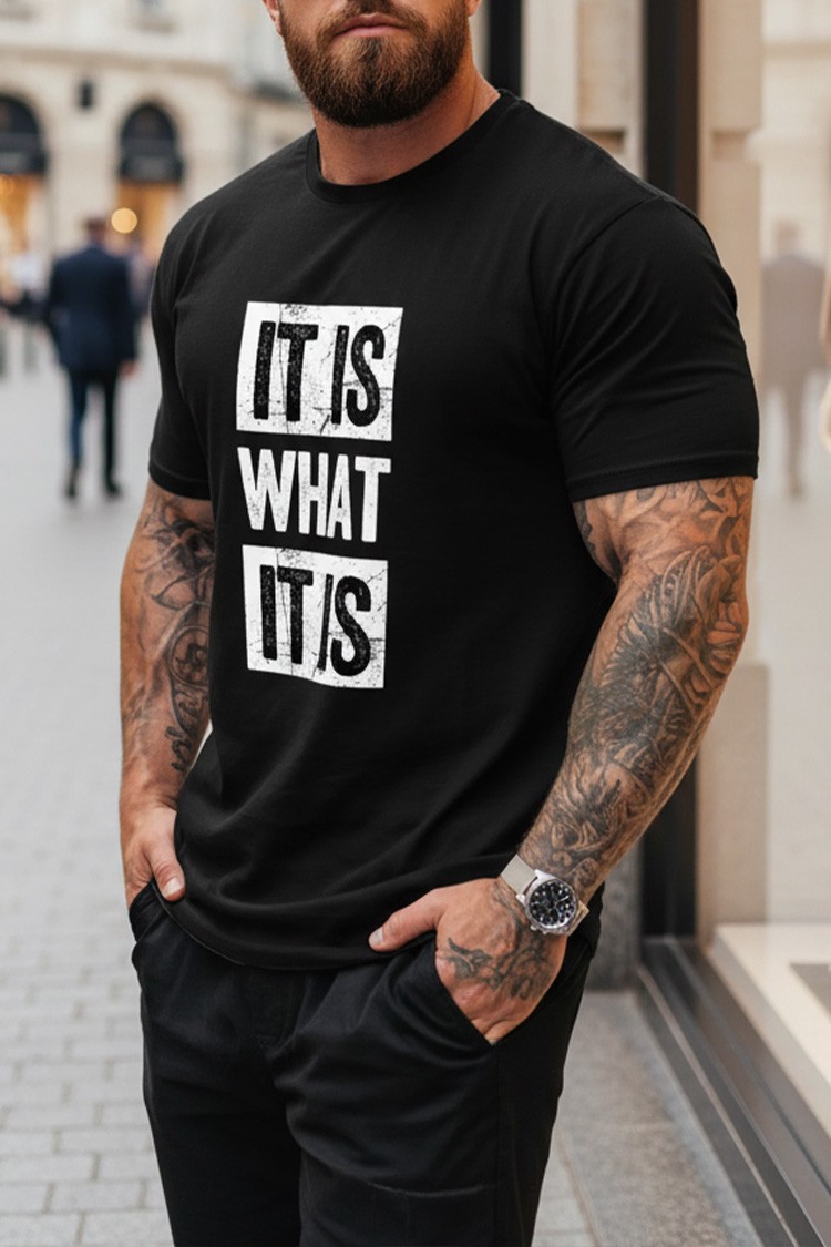 - Πρακτικό ανδρικό μπλουζάκι με άνετη γραμμή και εκτύπωση it is what it is, κατάλληλο για καθημερινή χρήση, βόλτα ή ως συμπλήρωμα της αθλητικής σας εμφάνισης.