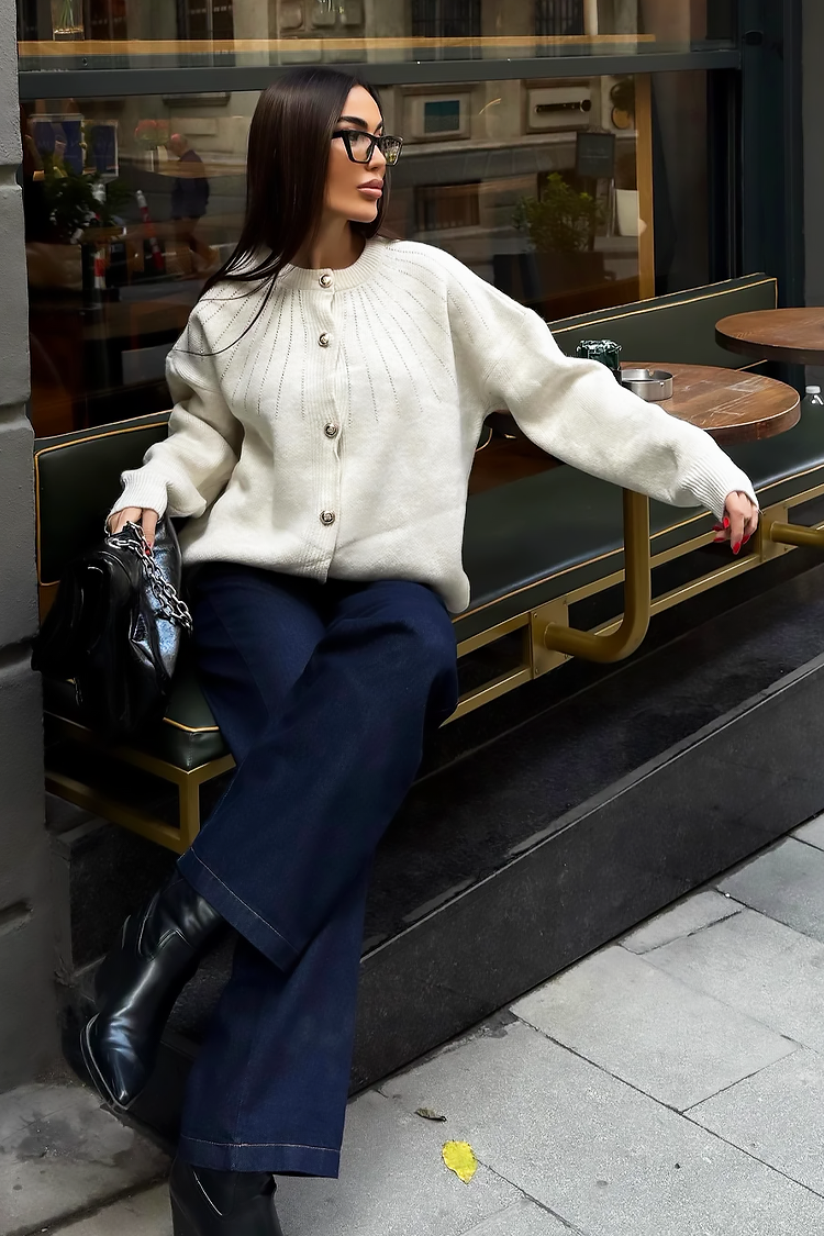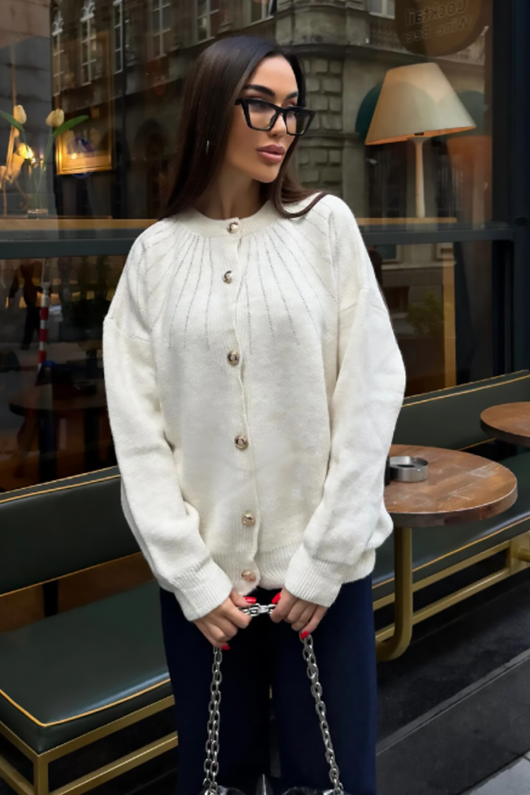 - Κομψή γυναικεία ζακέτα με κλασική γραμμή σε εκρού χρώμα.