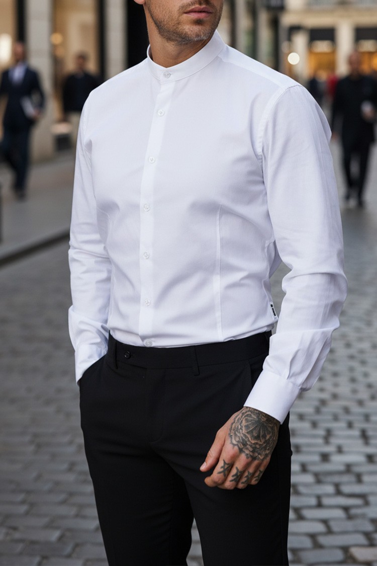 - Κομψό ανδρικό πουκάμισο σε κλασικό λευκό χρώμα, κατάλληλο για καθημερινές και επίσημες περιστάσεις.