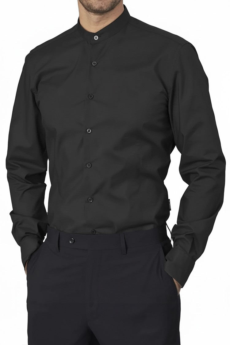 - Κομψό ανδρικό πουκάμισο σε κλασικό μαύρο χρώμα, κατάλληλο για καθημερινές και επίσημες περιστάσεις.