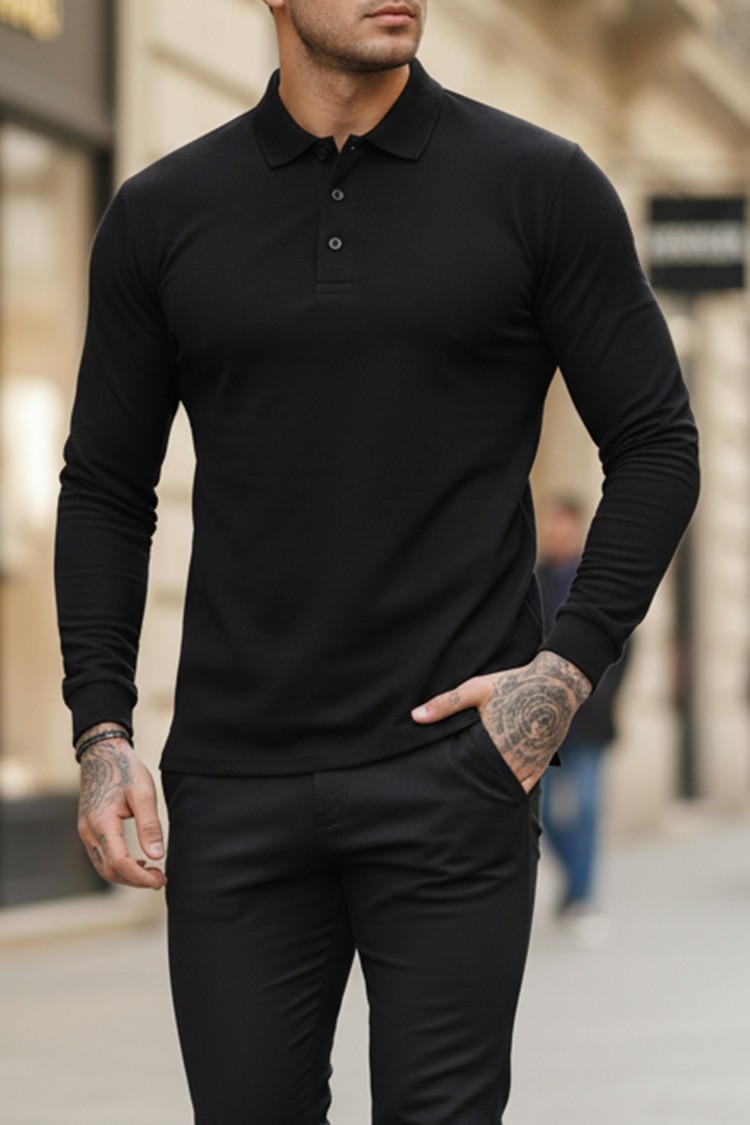 - Σπορ και κομψή ανδρική μπλούζα με γιακά, λαιμόκοψη με κουμπιά και μανίκια με μανσέτες, κατάλληλη για καθημερινή χρήση.