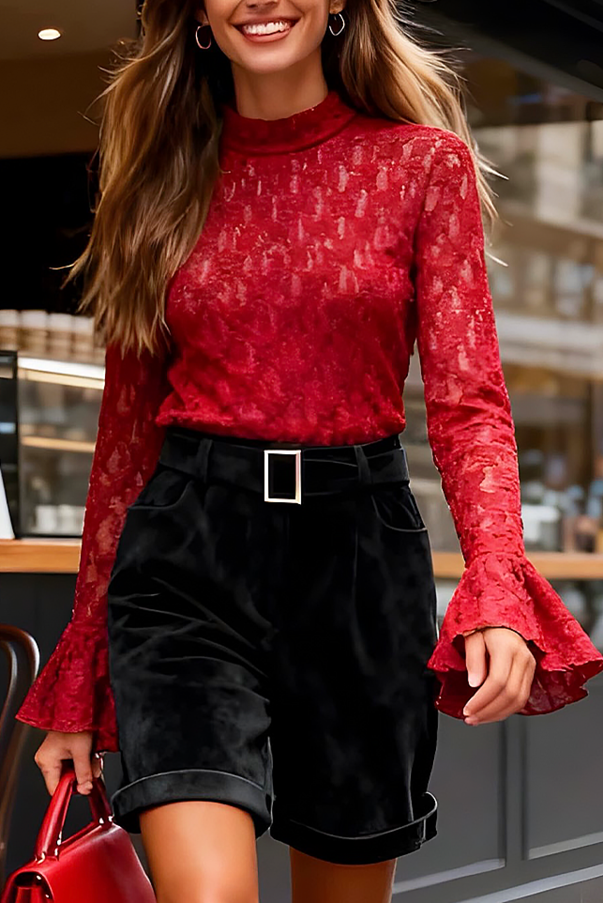 - Ταιριάζει τέλεια στο σώμα. Το μοντέλο έχει ελκυστικό μοτίβο, σέξι δαντέλα, κομψή λαιμόκοψη και κοκέτα μακριά μανίκια.