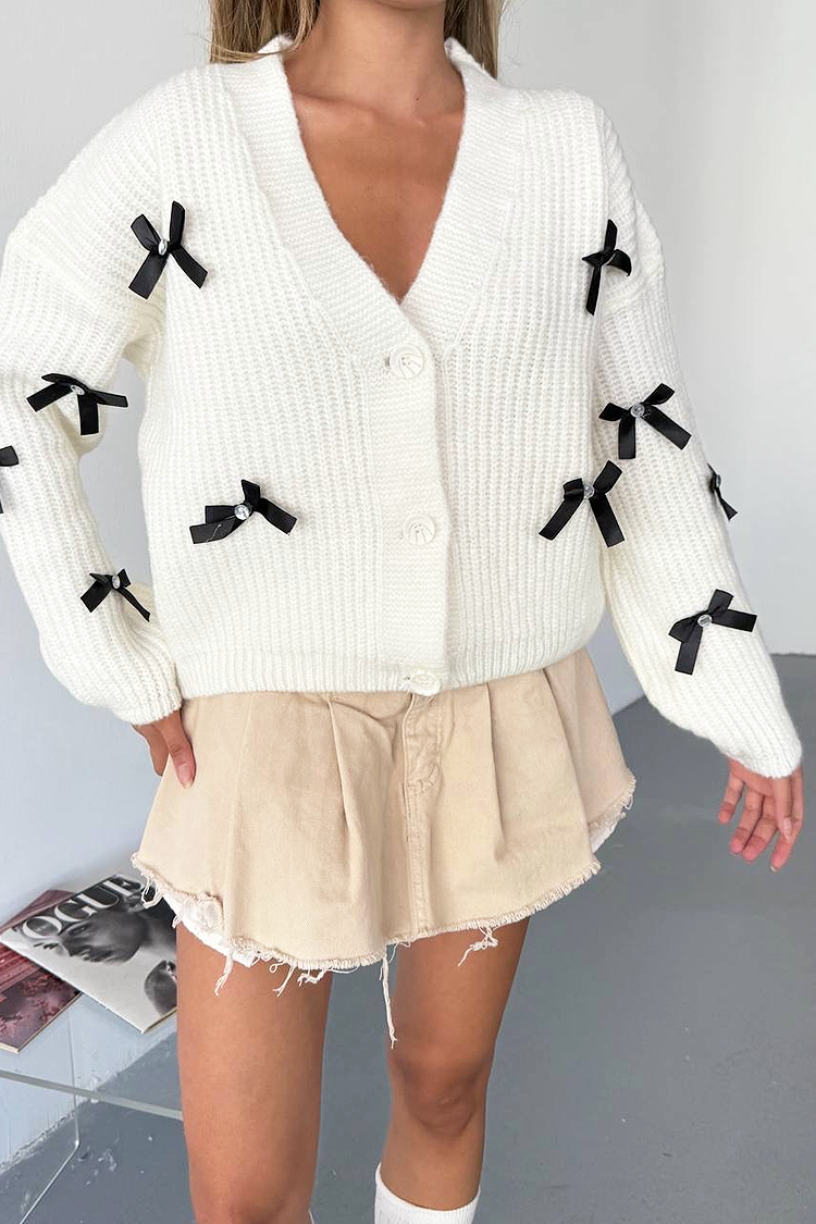 - Κομψή γυναικεία ζακέτα με κλασική γραμμή σε λευκό χρώμα.