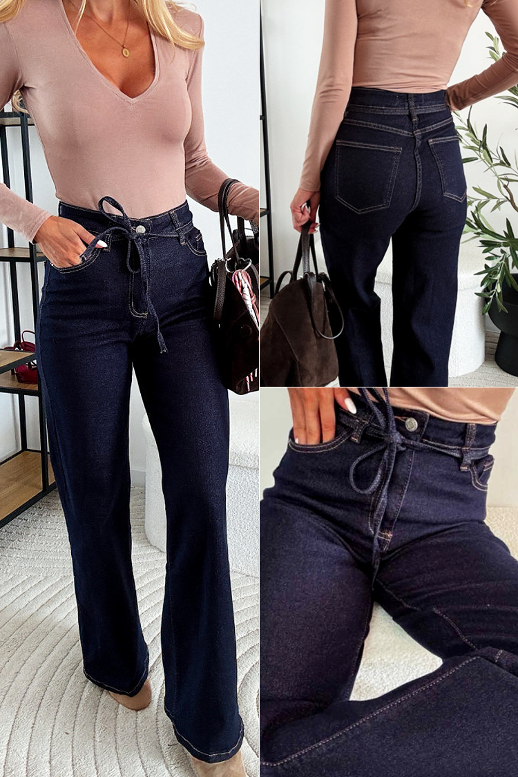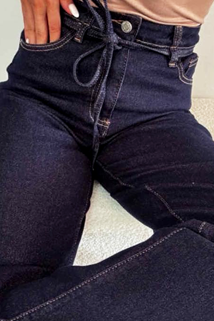 - Το μοντέλο έχει ψηλή μέση, άνετη γραμμή, τσέπες και ζώνη από denim ύφασμα.