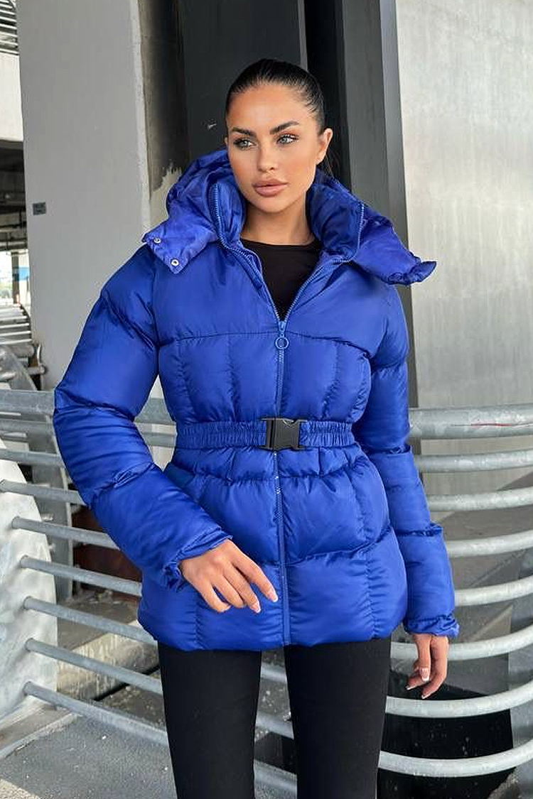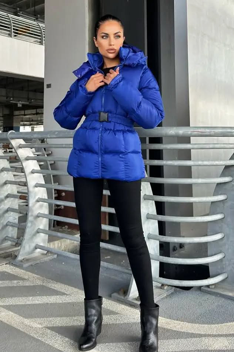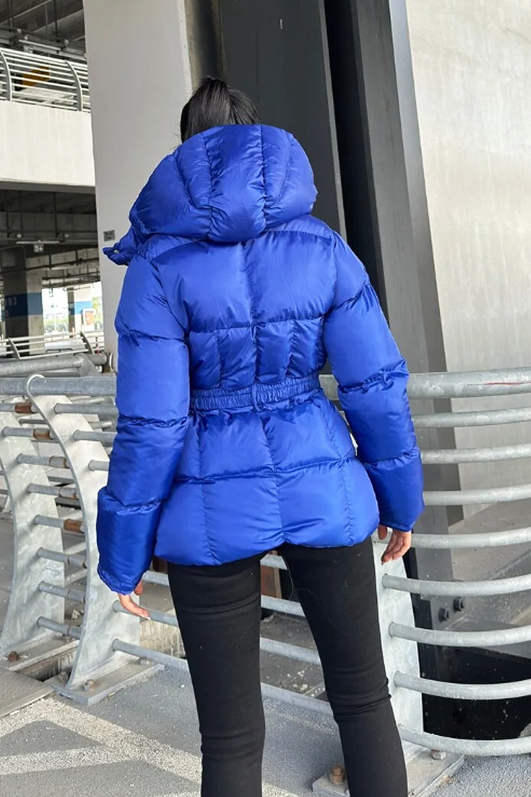 - Το μοντέλο έχει καπιτονέ σχέδιο, κουκούλα, ζώνη από το ίδιο ύφασμα και άνετο κλείσιμο με κουμπιά.