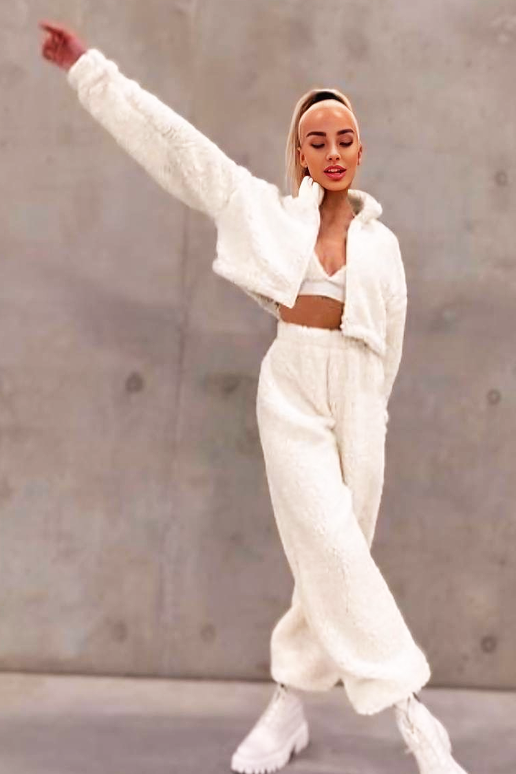 - Το φούτερ έχει φερμουάρ και κουκούλα, το παντελόνι έχει άνετη γραμμή, ενώ το μπουστάκι έχει κομμένο και σχεδιασμό.