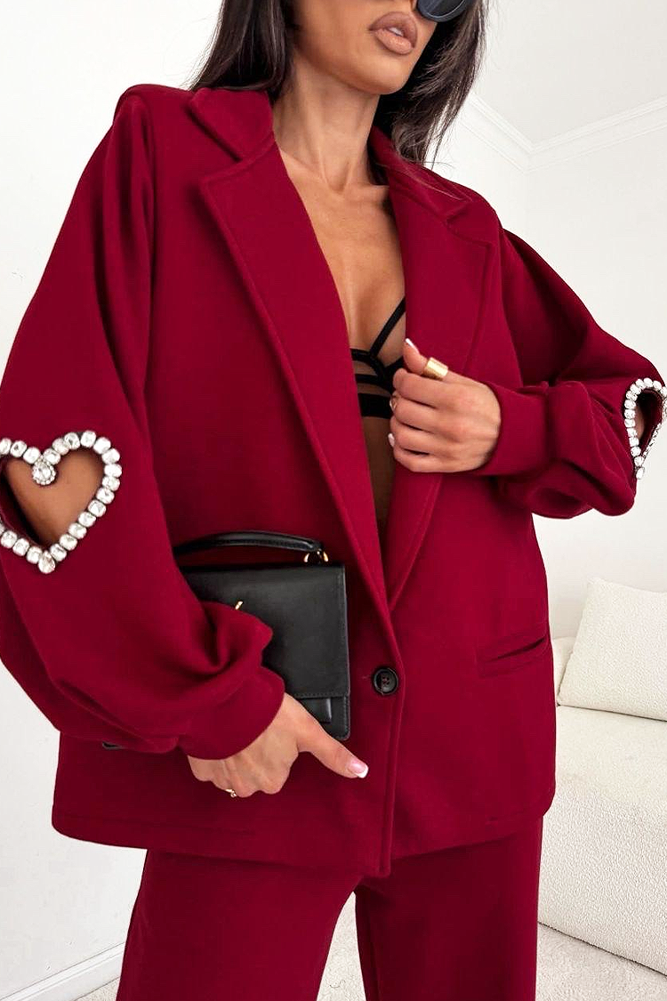 - Το σακάκι έχει OVERSIZE γραμμή και κλείνει με κουμπί μπροστά.