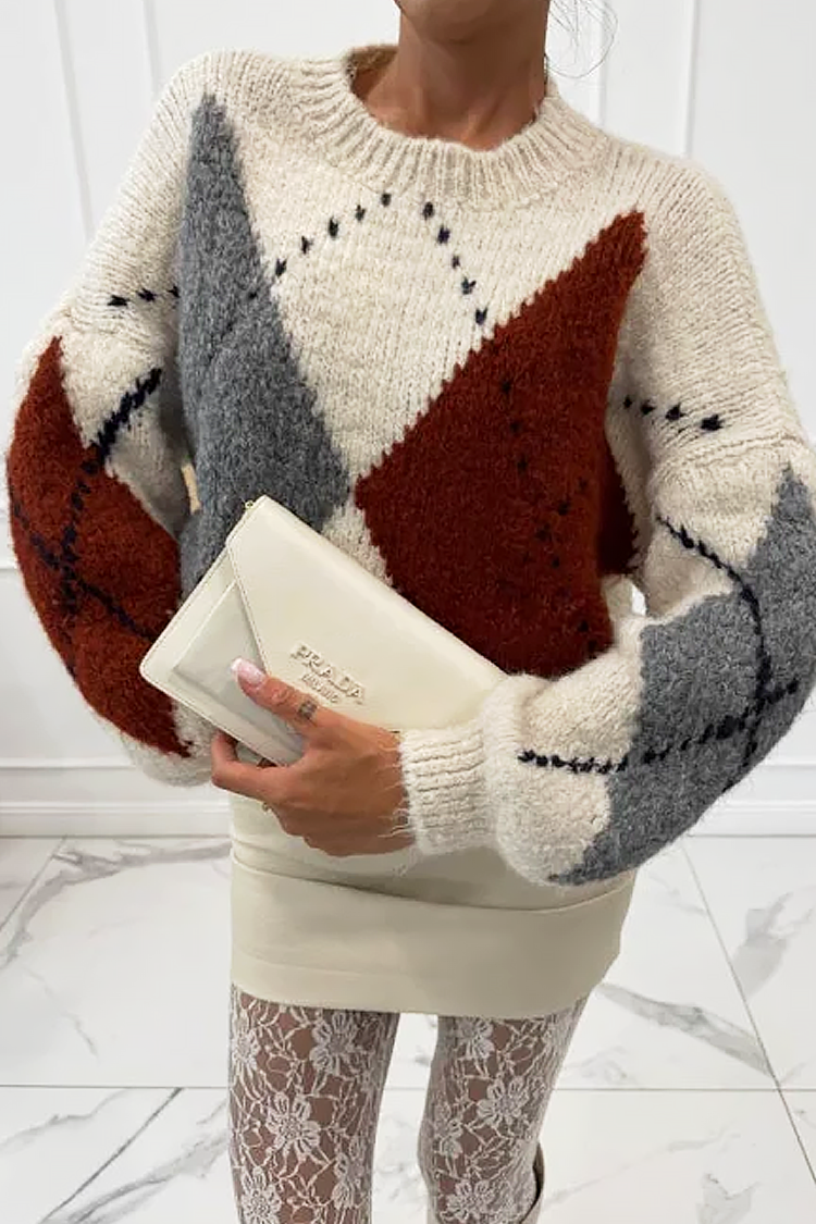 - Κομψό γυναικείο πουλόβερ με πολύχρωμο σχέδιο, κατάλληλο για καθημερινές, στυλάτες εμφανίσεις!