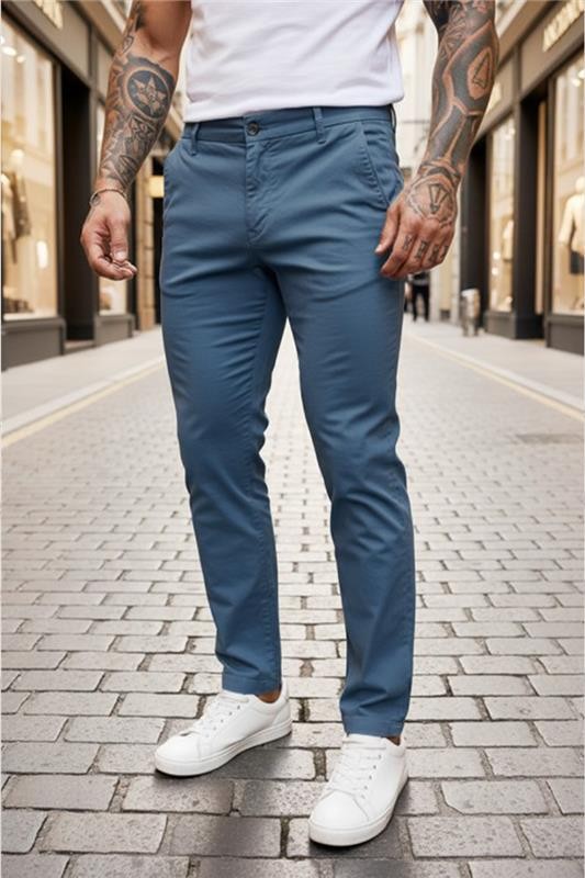 - Basic μοντέλο ανδρικό παντελόνι με ίσια μπατζάκια σε γαλάζιο χρώμα, κατάλληλο τόσο για καθημερινή όσο και για πιο κομψή εμφάνιση.