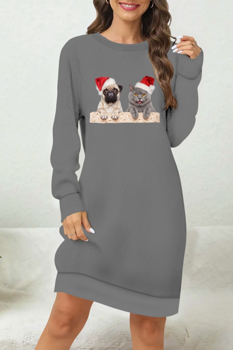 - Το φόρεμα έχει άνετη και ελεύθερη γραμμή, μακριά μανίκια και χριστουγεννιάτικο σχέδιο.