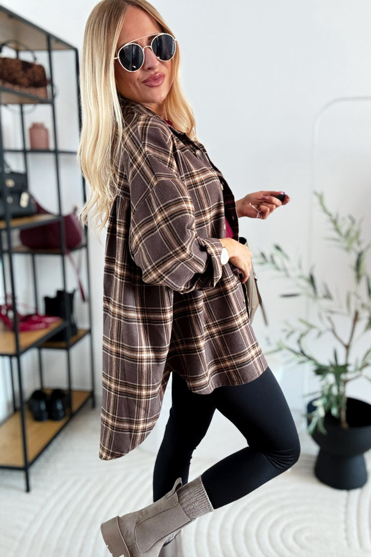 - Το μοντέλο έχει καρό σχέδιο, κλασικό κλείσιμο με κουμπιά και oversize σχέδιο.