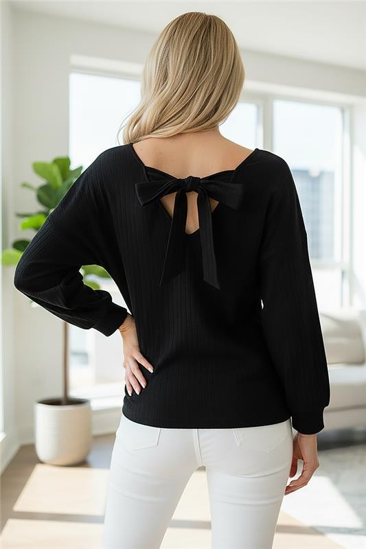 - Το μοντέλο έχει λαιμόκοψη σε σχήμα V και διακοσμητικες κορδέλες στην πλάτη.