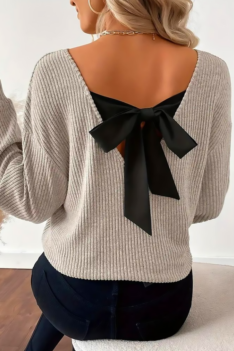 - Το μοντέλο έχει λαιμόκοψη σε σχήμα V και διακοσμητικες κορδέλες στην πλάτη.