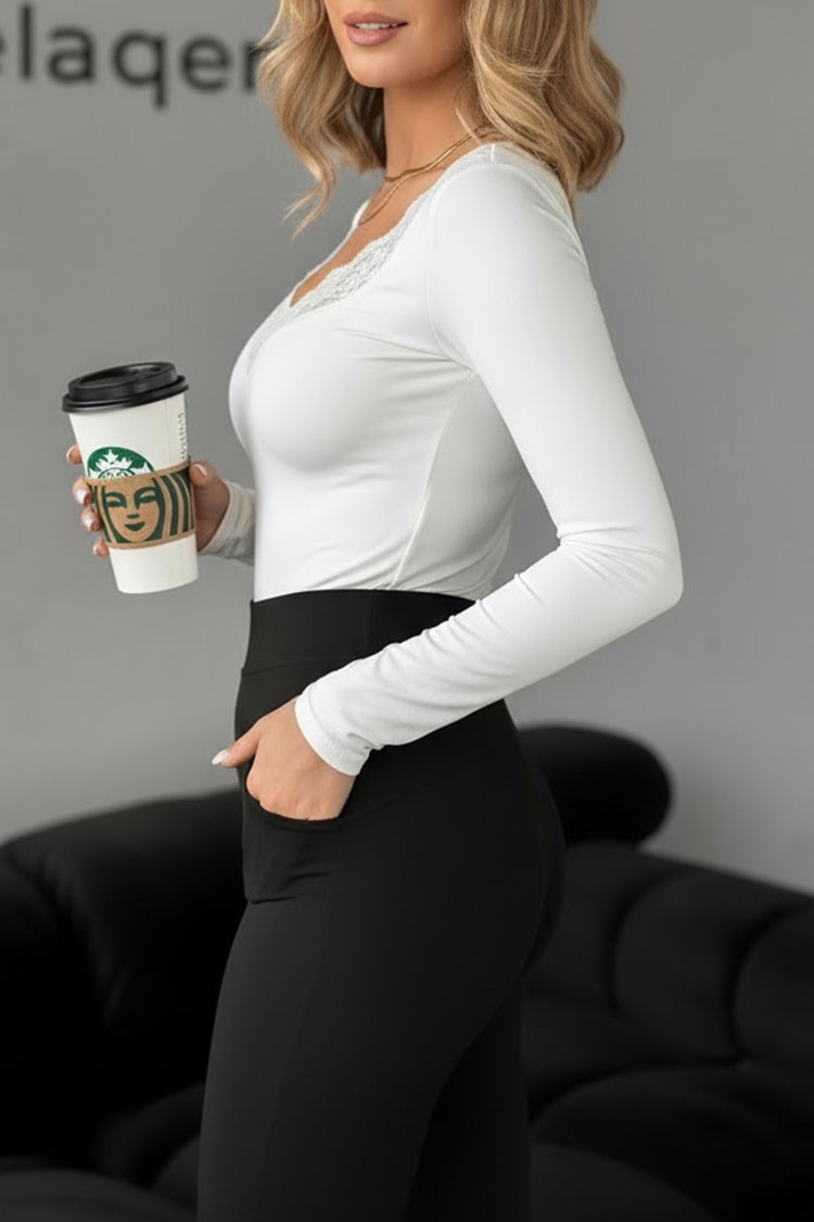 - Το μοντέλο έχει κλασική γραμμή και λεπτή δαντέλα στη λαιμόκοψη.