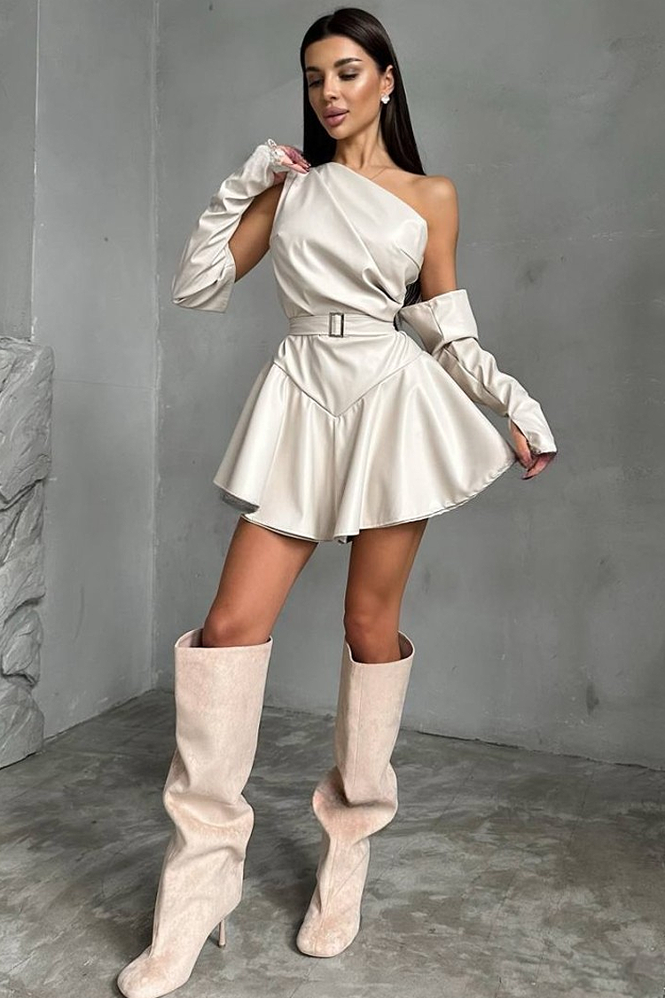 - Επιλέξτε αυτό το κοντό φόρεμα από οικολογικό δέρμα, κατάλληλο για κάθε ειδική περίσταση και πάρτι!