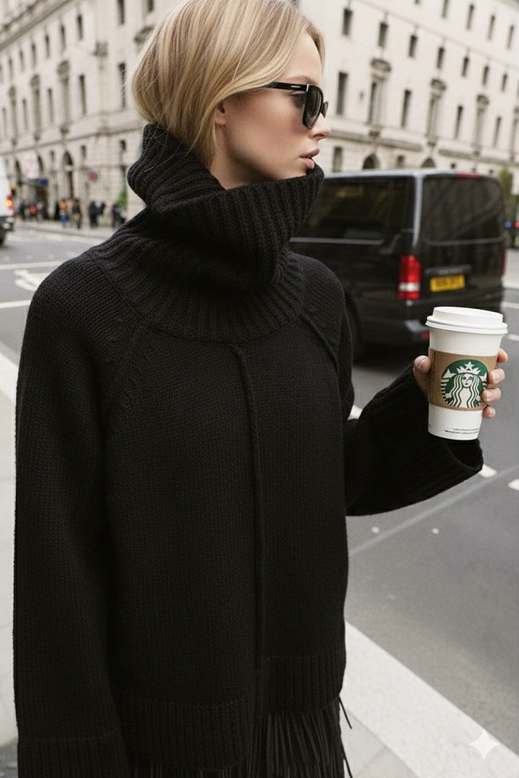 - Το μοντέλο έχει μακριά μανίκια, oversize γραμμή, εντυπωσιακά μακριά μανίκια και γιακά.