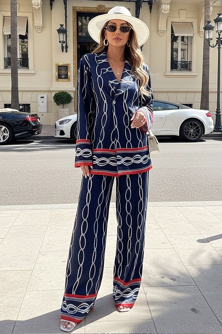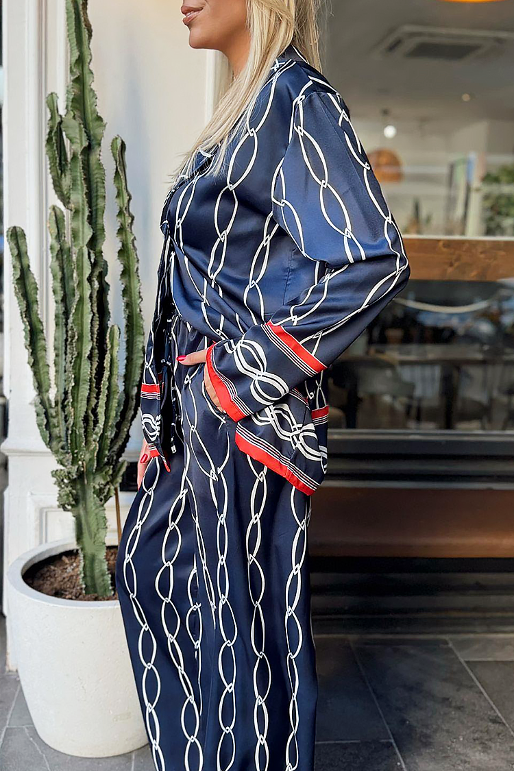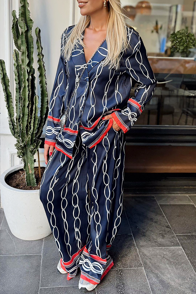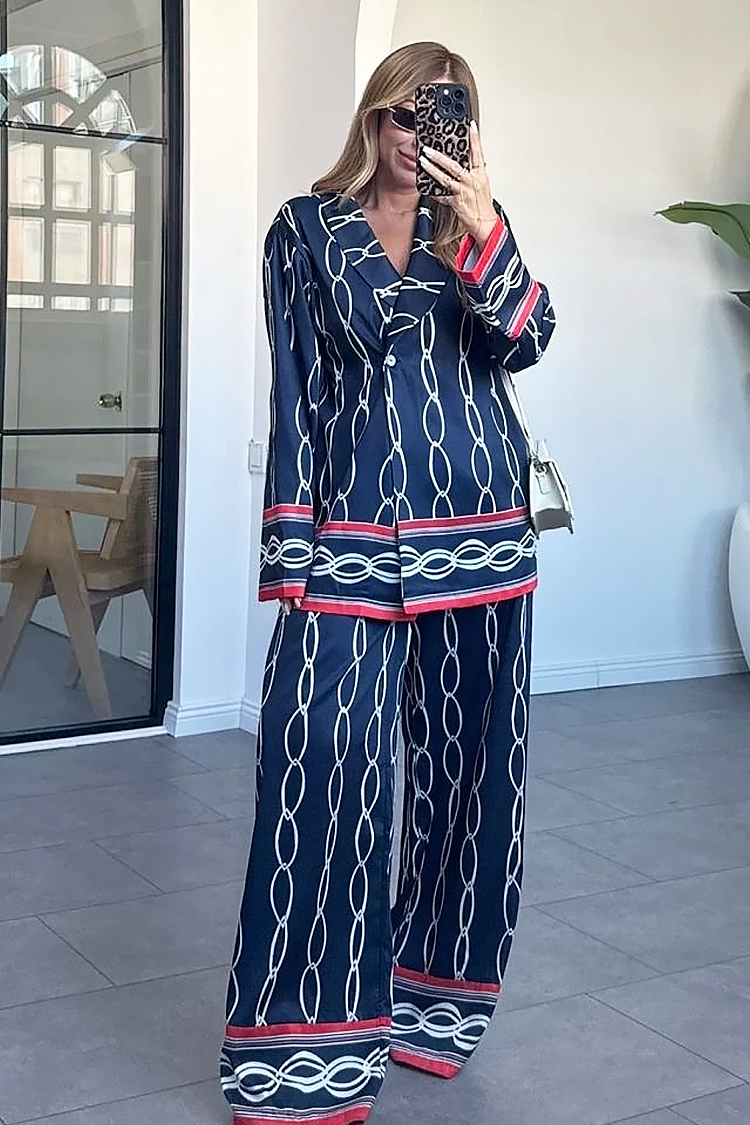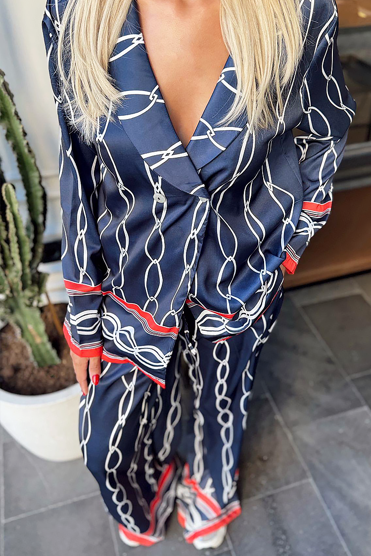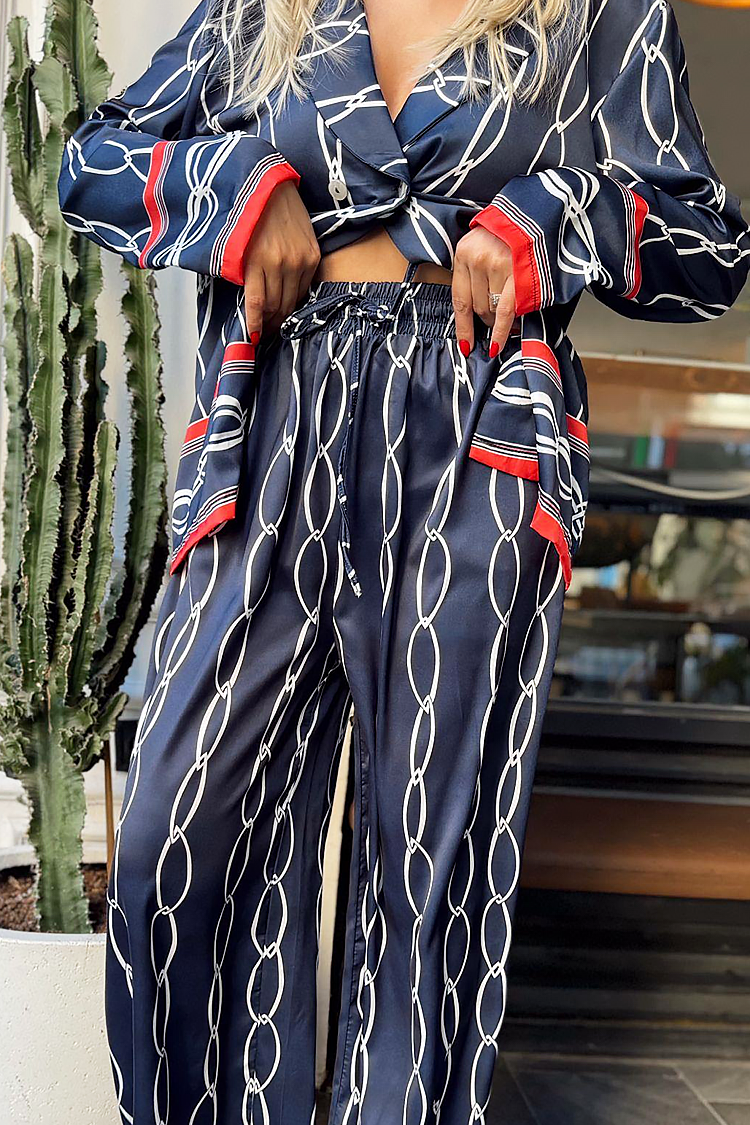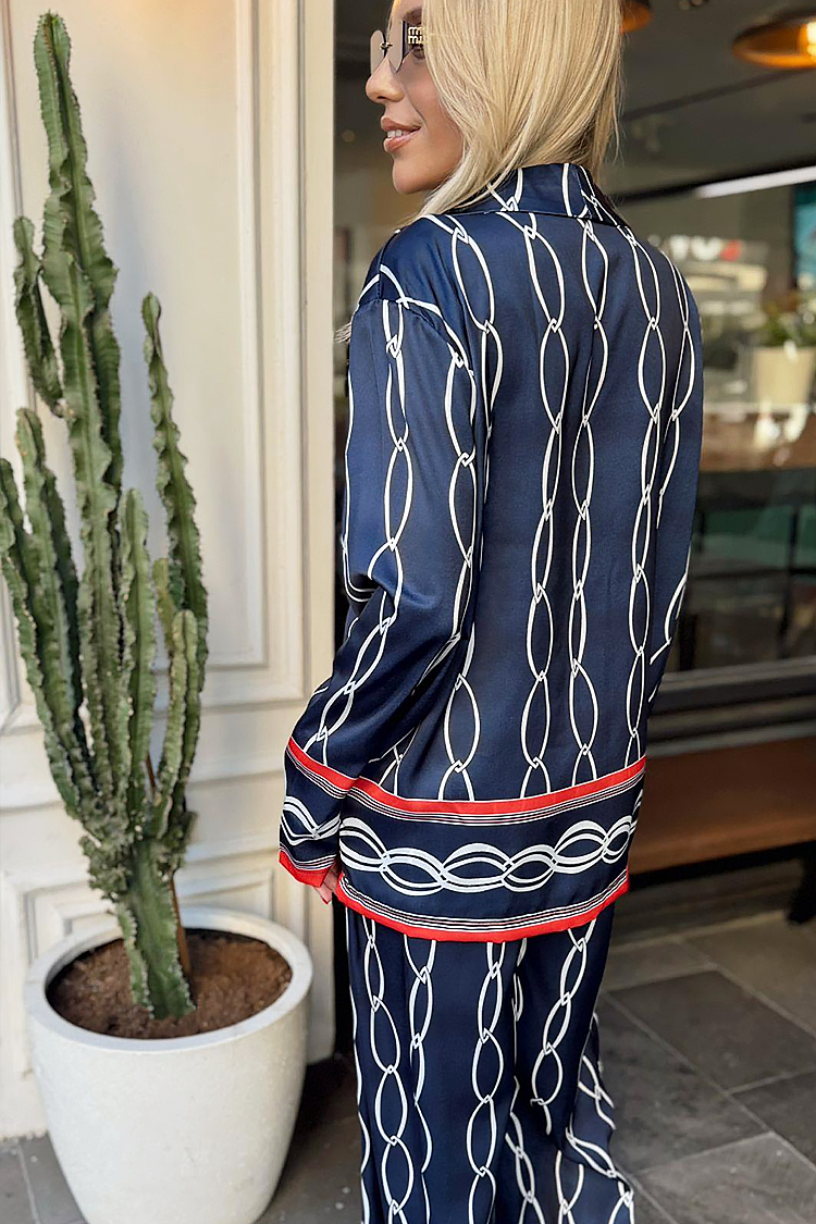 - Καθημερινό σατέν γυναικείο σετ δύο τεμαχίων με πολύχρωμο σχέδιο.