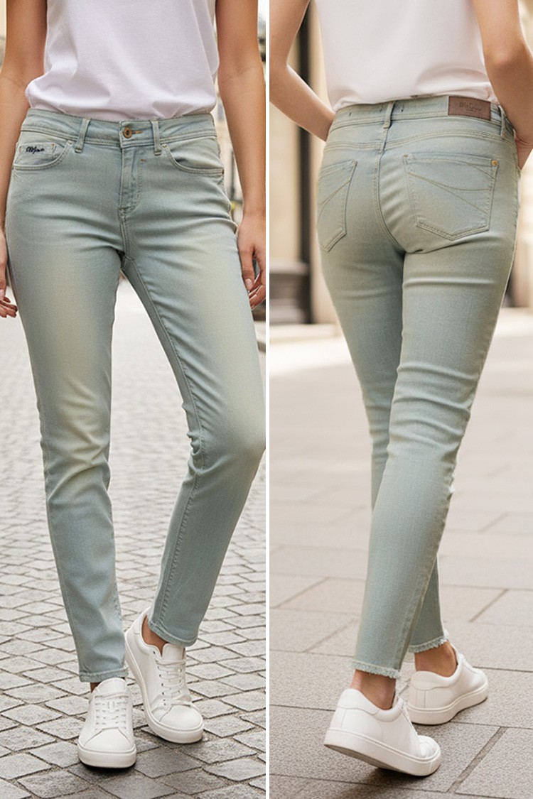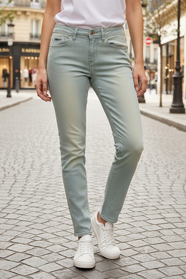 - Basic μοντέλο γυναικείων τζιν με slim fit γραμμή σε ανοιχτό μπλε χρώμα, κατάλληλο για καθημερινή χρήση ή βόλτα.