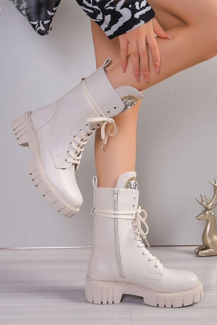 - Για να νιώθετε άνετα, αλλά και κομψά, επιλέξτε αυτά τα γυναικεία μπότες σε χρώμα εκρού.