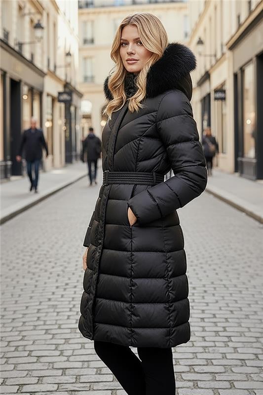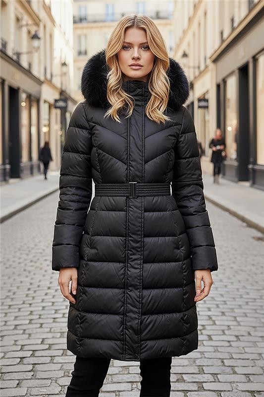 - Το μοντέλο έχει ελεύθερη γραμμή, μακρύ μήκος, πρακτικές τσέπες και κουκούλα με πούπουλα.