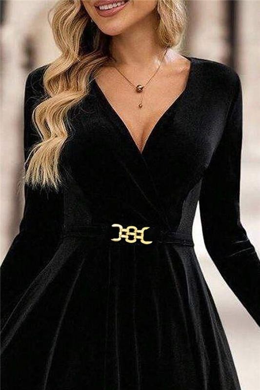 - Το μοντέλο έχει λαιμόκοψη με σχήμα V, μακριά μανίκια, κομψή γραμμή και ζώνη στο μπροστινό μέρος.