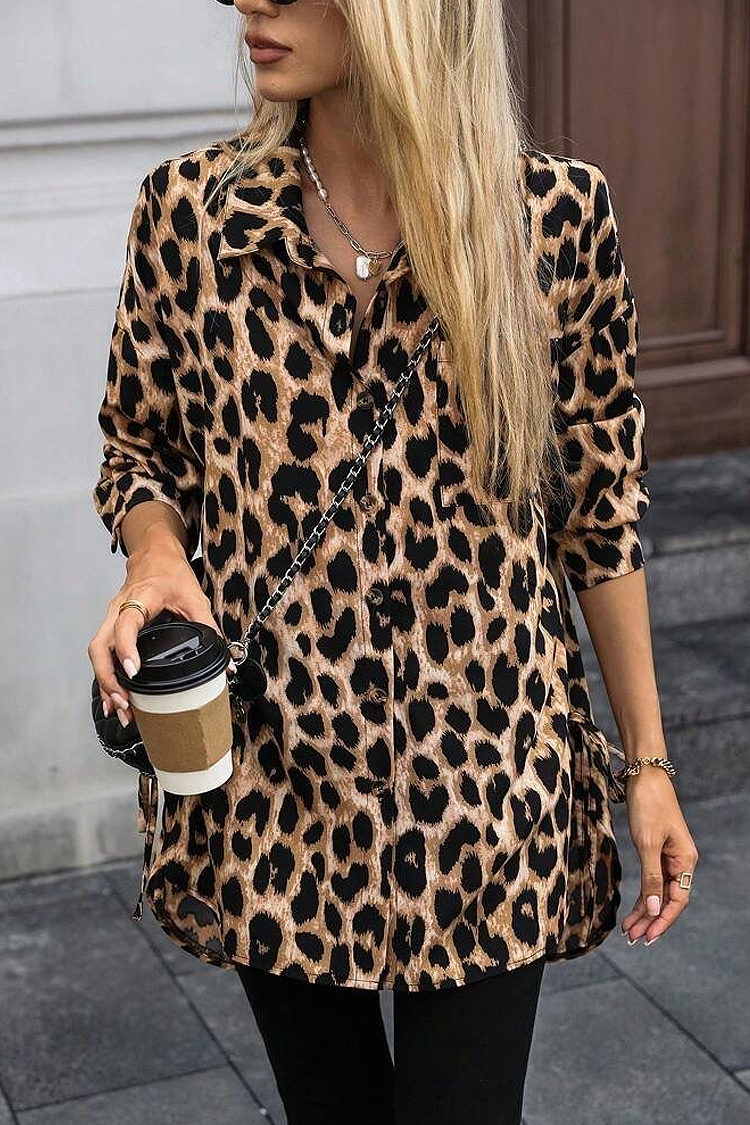 - Το μοντέλο έχει λεοπαρδάλινο σχέδιο, κλασικό κλείσιμο με κουμπιά και oversize γραμμή.