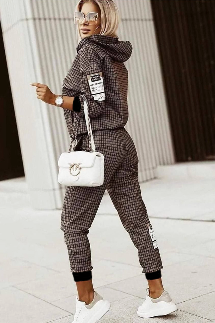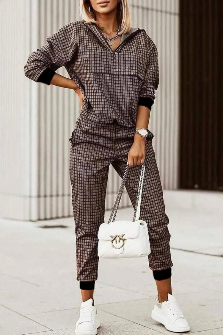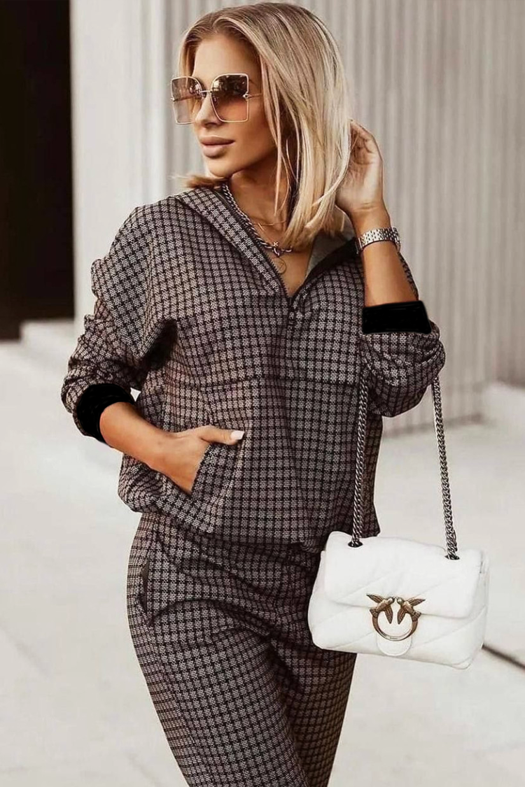 - Μοντέρνα πρόταση για την καθημερινότητά σας με στυλ - γυναικείο σετ δύο τεμαχίων με εντυπωσιακό καρό μοτίβο.