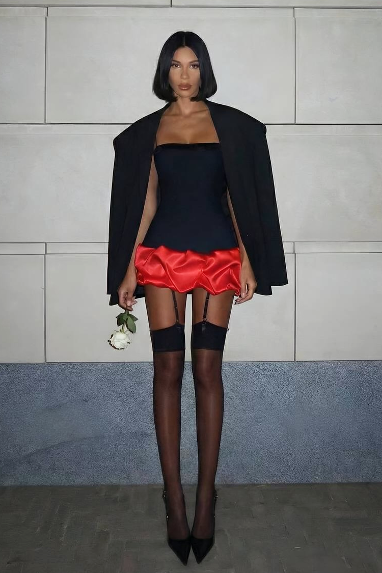 - Το μοντέλο έχει εφαρμοστή γραμμή, λεπτές τιράντες, κοντό μήκος και σατέν λεπτομέρεια.