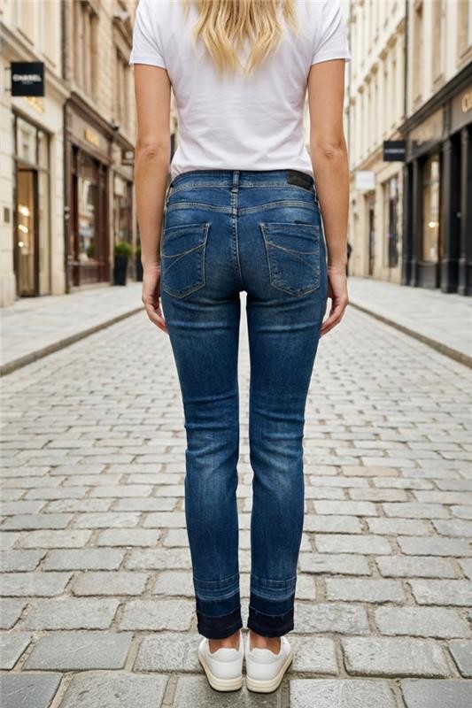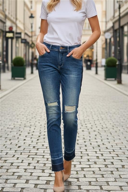 - Βασικό μοντέλο γυναικείων τζιν με ελκυστικό σχεδιασμό, κατάλληλο για καθημερινή χρήση ή βόλτα.