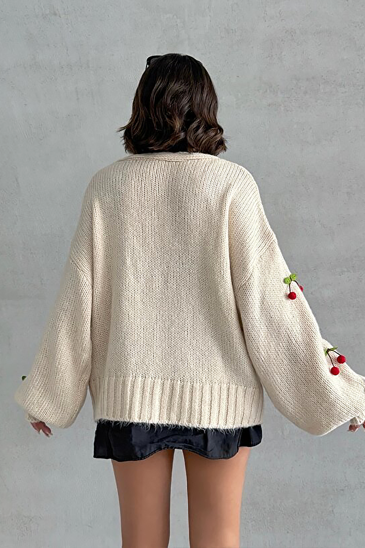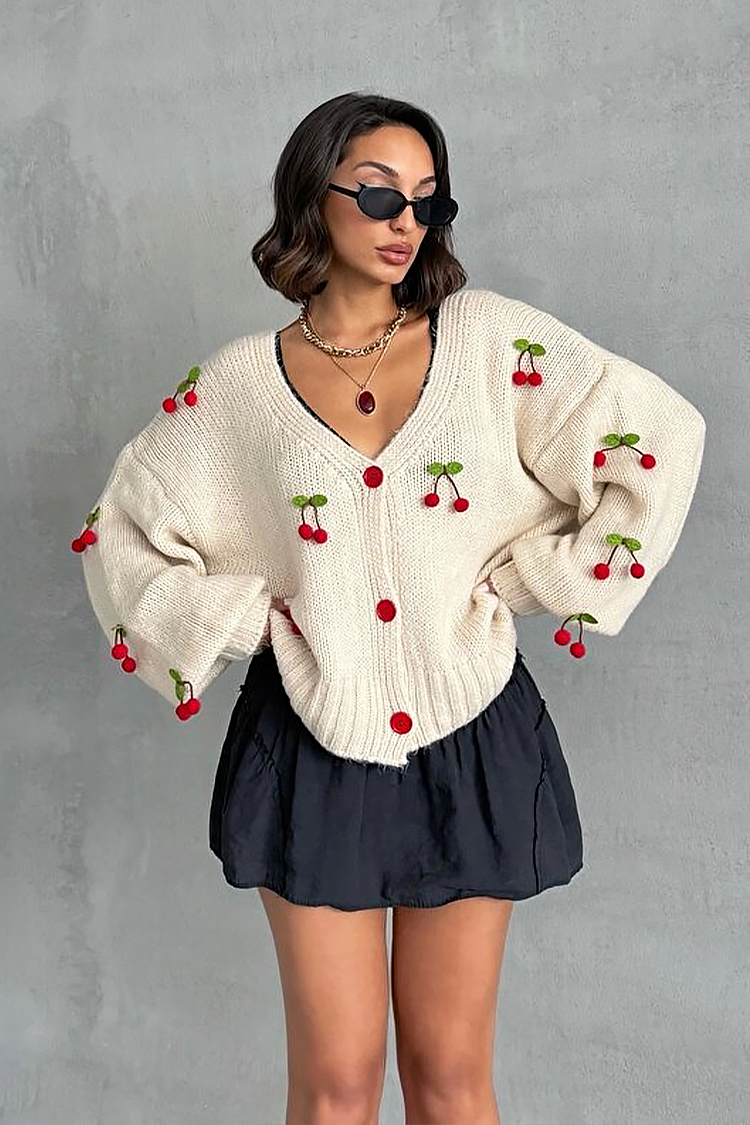 - Το μοντέλο έχει oversize γραμμή, κόκκινα κουμπιά, άνετο σχεδιασμό και διακόσμηση με κεράσια σε όλο το μήκος.
