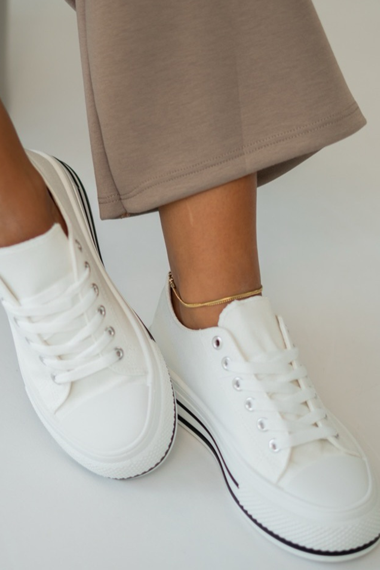 - Γυναικεία παπούτσια από ύφασμα σε λευκό χρώμα, με κορδόνια και πλατφόρμα, κατάλληλα για καθημερινή χρήση.