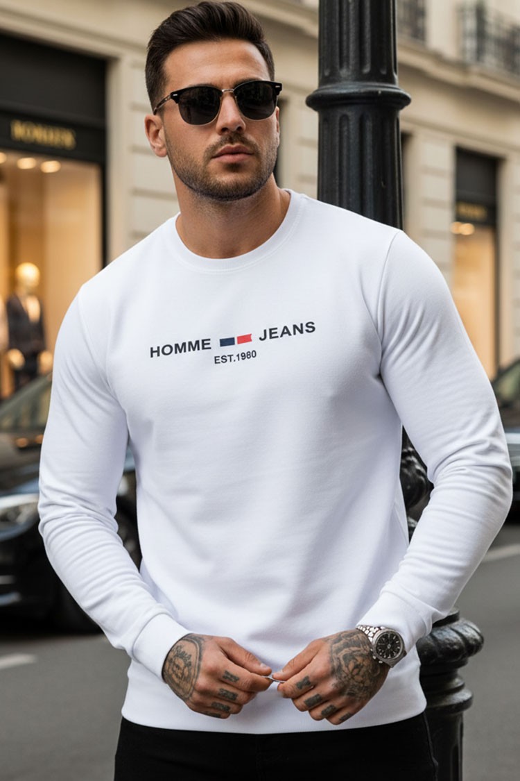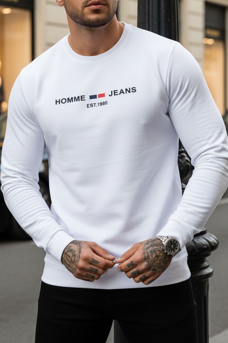 - Basic μοντέλο ανδρική μπλούζα με μονόχρωμο μοτίβο, μακριά μανίκια και τύπωμα, κατάλληλη για καθημερινή χρήση.