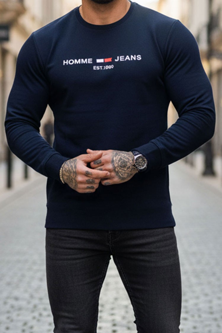 - Basic μοντέλο ανδρική μπλούζα με μονόχρωμο μοτίβο, μακριά μανίκια και τύπωμα, κατάλληλη για καθημερινή χρήση.
