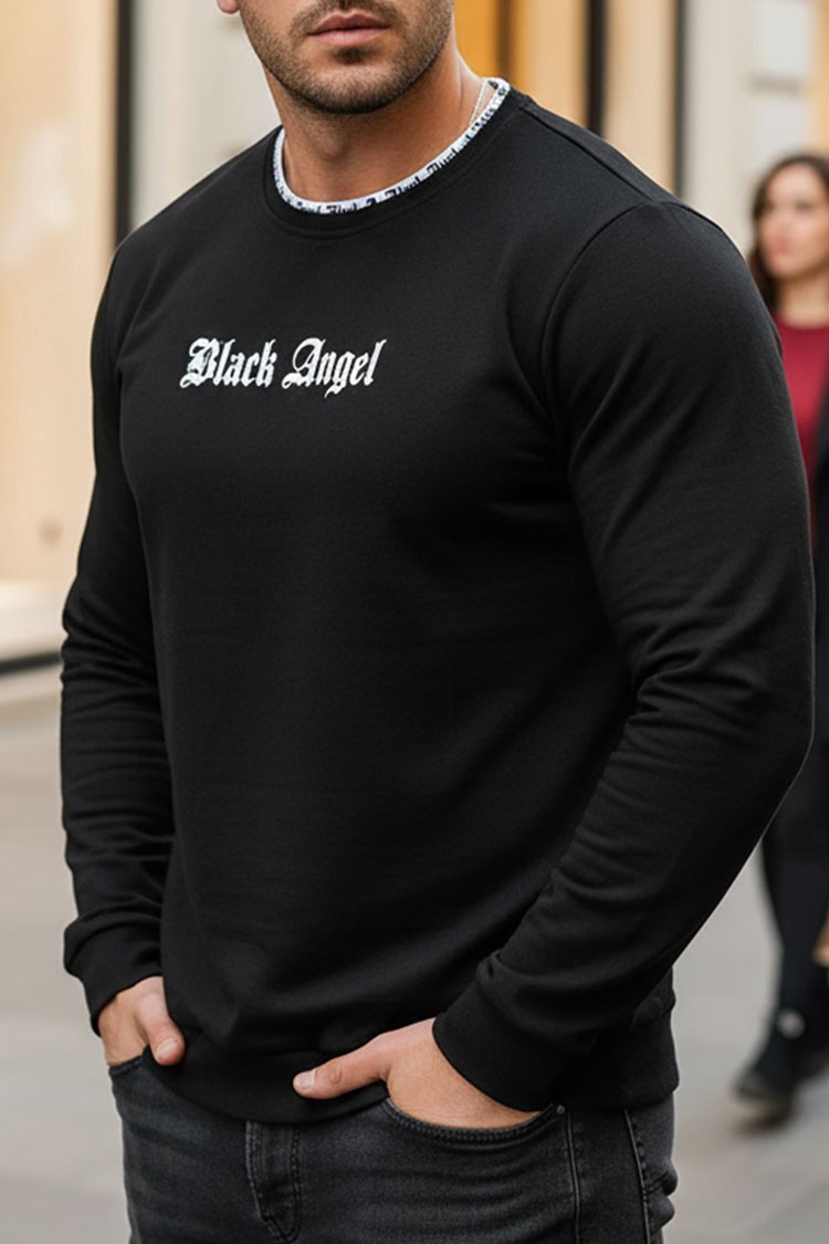 - Πρακτική ανδρική μπλούζα σε μαύρο χρώμα με κλασικό, μοντέρνο font Black Angel και μακριά μανίκια.