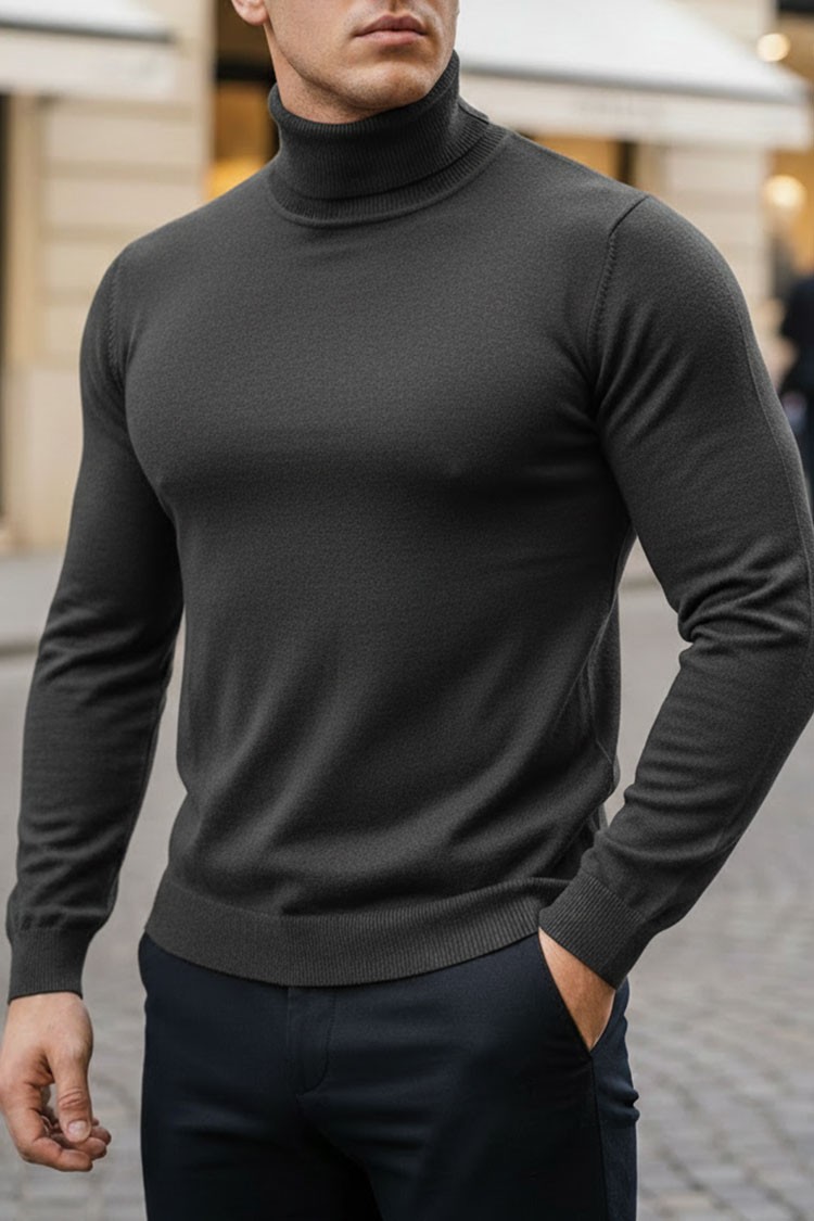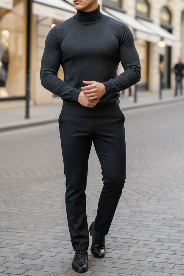 - Κομψό ανδρικό πουλόβερ με ζιβάγκο και εφαρμοστή γραμμή σε χρώμα γραφίτη.