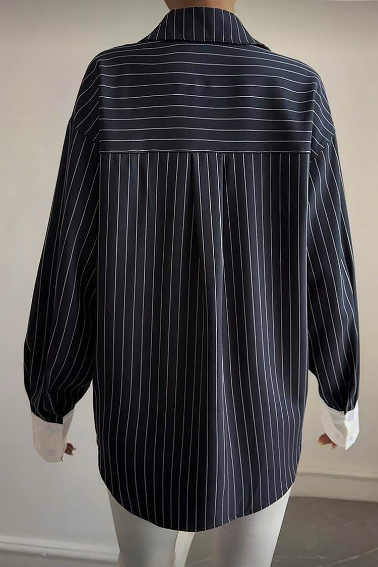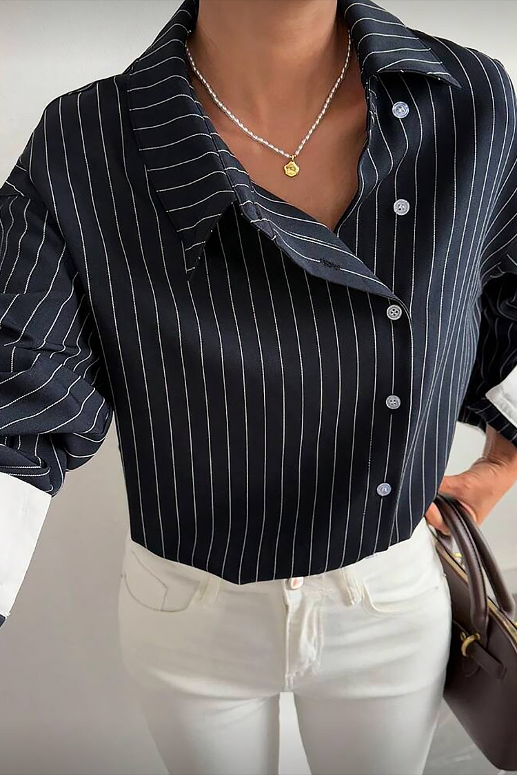 - Το μοντέλο έχει ριγέ σχέδιο και κουμπιά.
