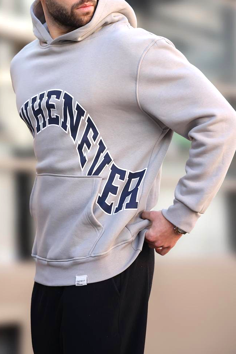 - Πρακτικό ανδρικό φούτερ σε γκρι χρώμα με διακριτική, αντίθετη επιγραφη, κατάλληλο για καθημερινή χρήση ή βόλτα.