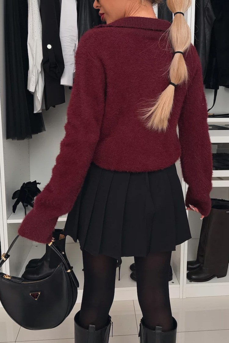 - Για μια κοκέτα εμφάνιση, εμπιστευτείτε αυτή τη κοντή, πλισέ φούστα με μονόχρωμο μοτίβο και ζώνες.