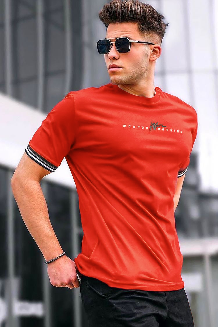 - Πρακτικό ανδρικό μπλουζάκι με άνετη γραμμή και στάμπα με επιγραφή, κατάλληλο για την καθημερινότητα, για βόλτα ή ως συμπλήρωμα στο σπορ στυλ σας.