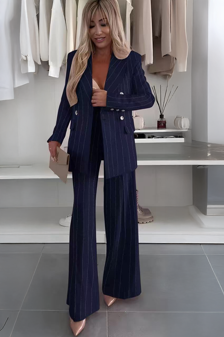 - Το σακάκι έχει διπλό κλείσιμο, φουσκωτά μανίκια και κομψά καπάκια.